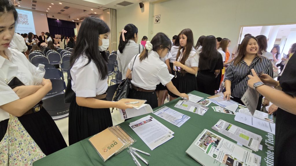 Our esteemed faculty member, Dr. Duanghathai Buranajaroenkij, represented AIT–GDS and shared valuable insights about AIT’s programs, student life, academic opportunities, and scholarships — including the Royal Thai Government Scholarship available for Thai applicants. She also highlighted activities such as the Student Assistant Program, student exchange, internship opportunities, and support from the AIT Language Center.